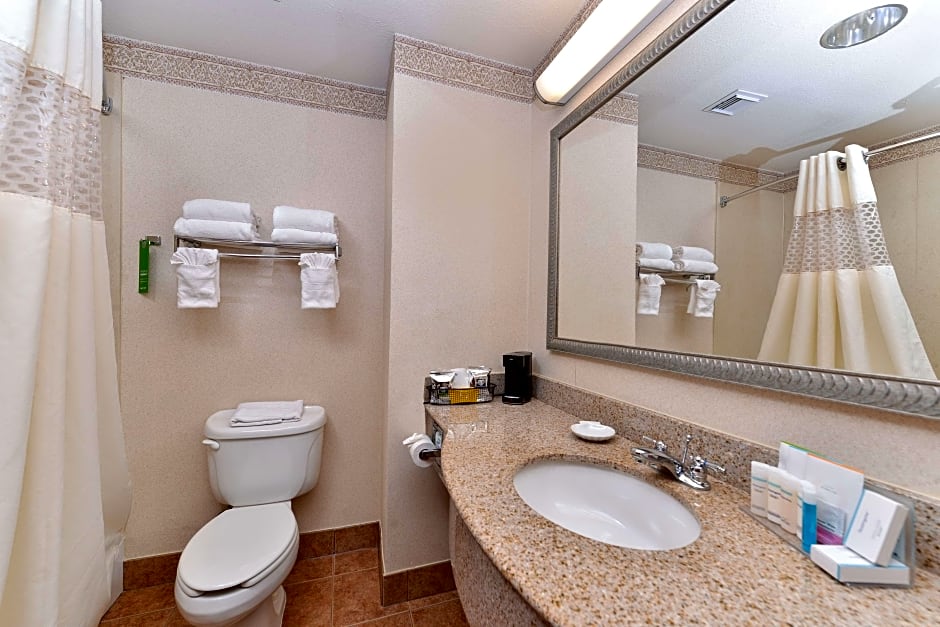 This accessible room features a 50-inch flat-screen TV, microwave and small refrigerator. A coffee maker is provide as well.