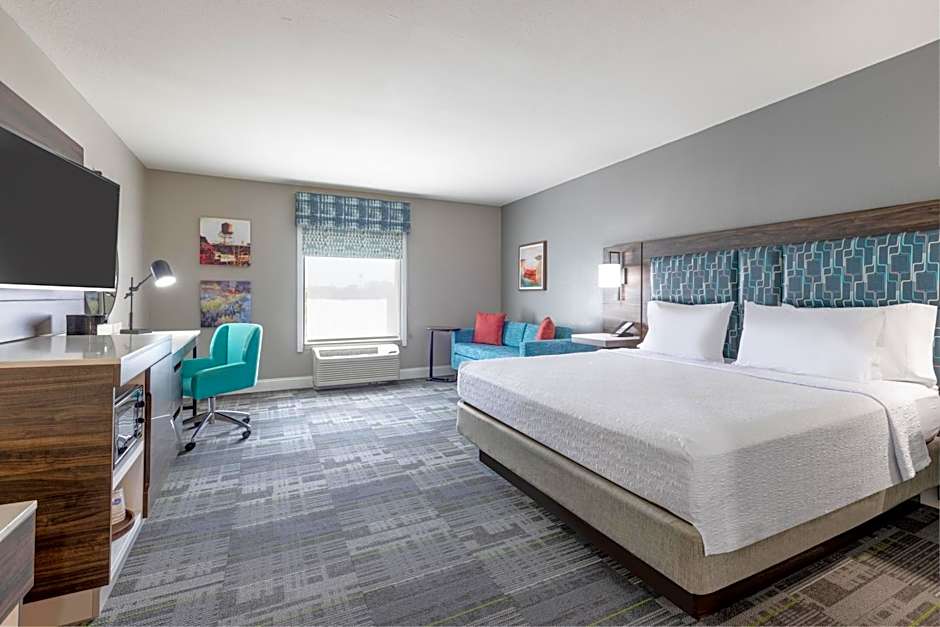 This accessible room features a 50-inch flat-screen TV, microwave and small refrigerator. A coffee maker is provide as well.